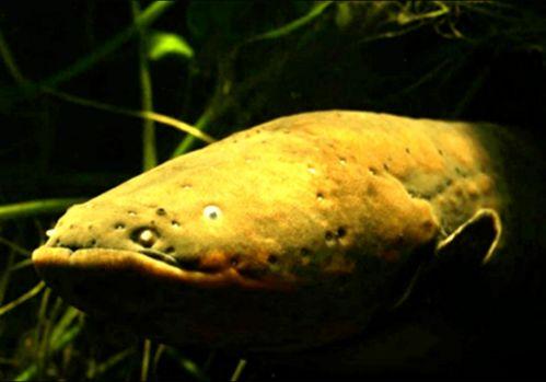 这张图片展示了电鳗的眼睛,它们的眼眶周围布满了发电器官。这不禁让人好奇,电鳗的视力是否也因此受到影响?